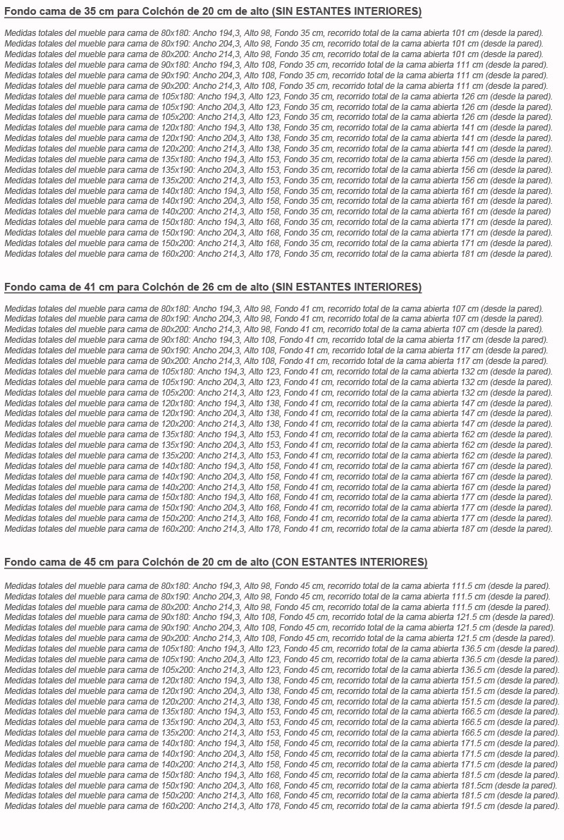 FONDO CAMA DISPONIBLE EN 35 Y 41 CM SIN ESTANTES Y EN 45 CM CON ESTANTES INTERIORES.